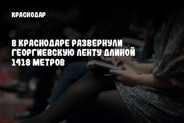 В Краснодаре в честь юбилея Победы состоялась масштабная акция, в ходе которой горожане развернули огромную Георгиевскую ленту длиной 1418 метров, символизирующую количество дней Великой Отечественной войны. Акция прошла на улице им. Мачуги, где собрались школьники, молодежь, ветераны и представители власти.