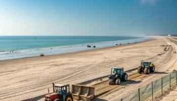 Краснодарский край ведёт круглосуточные работы по защите пляжей от мазута, накрыв 10 км защитного вала полипропиленовыми сетями после обнаружения нефтепродуктов на Бугазской косе и участке между Витязево и Благовещенской